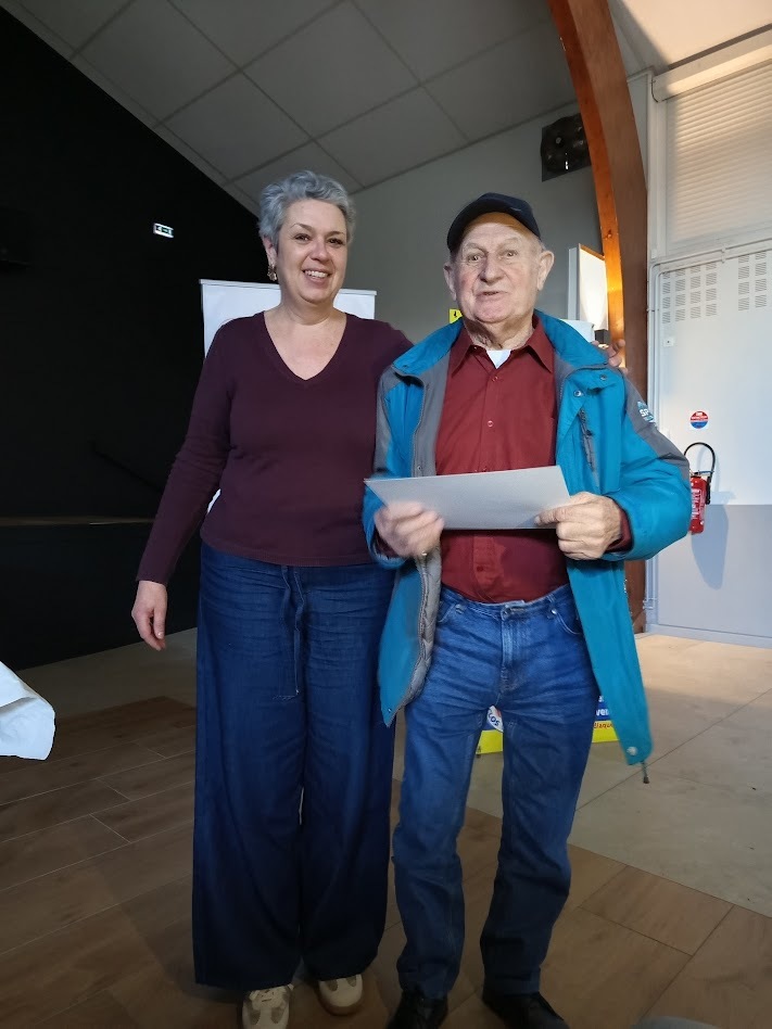 Récompenses 2025 : Diplôme du Mérite : Danielle Leroux - secrétaire et trésorière du CS cyclo Chateau-Thierry ; Jean-Jacques Villefeu - délégué sécurité du CS cyclo Chateau-Thierry ; Diplôme de la Reconnaissance : André Jurczak - délégué sécurité UCVT Le tiot Vélo de Voulpaix ; Gérard Blondel - trésorier UCVT Le Tiot Vélo de Voulpaix.