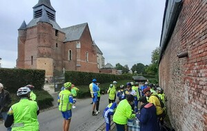 Le parcours les a conduits à la rencontre de plusieurs églises fortifiées, notamment celles de Lugny, Houry et Gronard. Une halte particuliète a été consacrée à l'église de Burelles, où Aurore Blonde, cyclote du Tiot Vélo, a joué le rôle de guide. Elle a su captiver l'auditoire en retraçant la vie quotidienne des villageois d'autrefois et les moyens de défense dont ils disposaient en période troublée. Un seul regret : ne pas avoir pu monter jusqu'à la salle de refuge dite "des juifs" où toute la population pouvait trouver place.