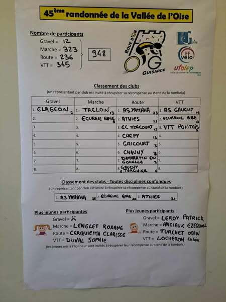 C'est formidable de voir autant de participants ce dimanche 18 mai 2025 avec 948 personnes engagées dans les différents parcours : la Marche (323) - Le VTT (345) - le Gfravel (12) et la Route (236).