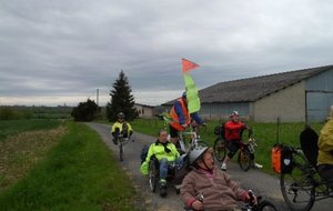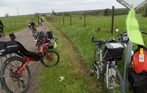 Mardi 8 mai 2012. Notre ami Aldo du Tiot Vélo, adepte du "vélo couché" avait convié durant un long week-end de 4 jours ses homologues pour une concentration dans les Ardennes, à Signy le Petit. Les membres du club adeptes du "vélo droit" pouvaient se joindre à eux. Lors de la dernière journée, sur un circuit de 37 km 5, Françoise, Aurore, Pascal et Gérard ont répondu présent et dans une ambiance chaleureuse ont pu mesurer tout ce qui pouvait séparer les deux disciplines en se respectant. Sur un parcours très vallonné avec des côtes parfois à plus de 11 %, l'échange fut positif. Les cyclos que nous sommes se sont bien informés sur les bienfaits de ces étranges machines et de leur utilisation, car aucun des membres du vélo couché ne veut revenir à la formule du vélo droit. Ces deux disciplines ont "cohabité" dans la bonne humeur et la convivialité. Merci à Aldo qui a innové ce concept encore inconnu dans notre région. Une belle réussite à encourager pour une meilleure connaissance de ce petit monde à part.