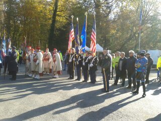 Une nouvelle fois, bon nombre de cyclotouristes, venant de la Picardie principalement, mais aussi de la région Parisienne s'étaient donnés rendez-vous au carrefour de l'Armistice, ce, en mémoire aux nombreux poilus disparus, mais aussi en mémoire aux estafettes en vélos qui permettaient à nos combattants de coordonner leurs efforts. A également été associée à cette fête patriotique, la mort de Eve, cette cyclotouriste du Val d'Oise, qui, en 2013, sur le trajet retour, à été la victime d'un grave accident de la route. A cet effet, une gerbe a été déposée par le CODEP 60.