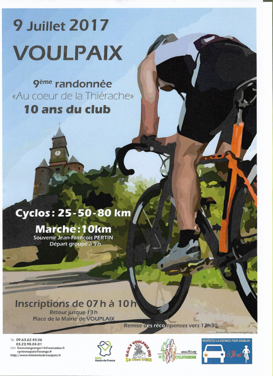 Cyclos : 25 - 50 - 80 km - Inscriptions de 7 h à 10 h